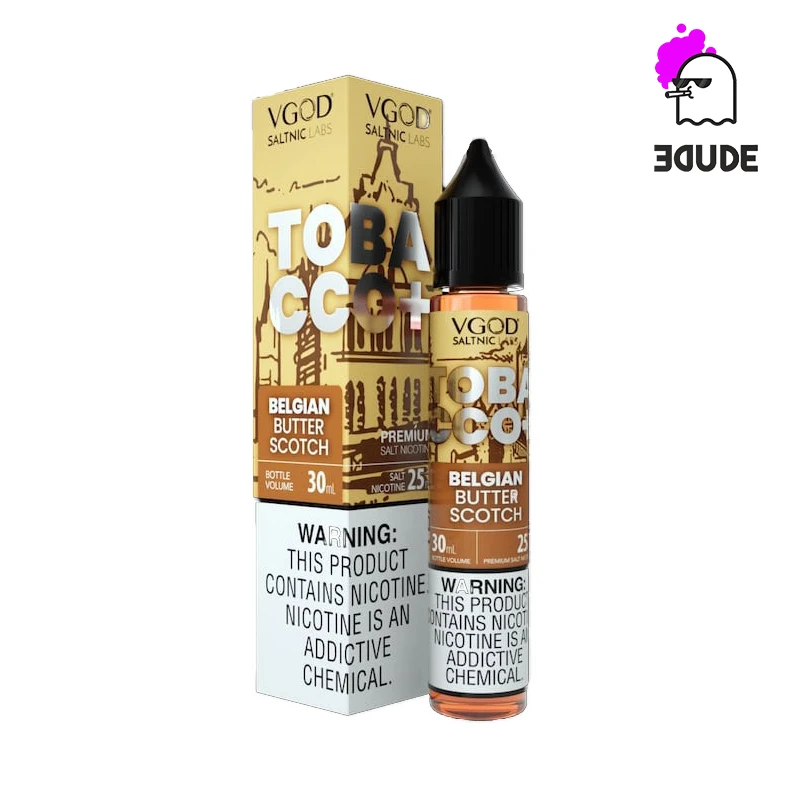 سالت نیکوتین VGOD Tobacco Belgian Butterscotch ترکیبی حرفهای و خوشساخت از طعم تنباکوی اصیل با تافی بلژیکی (Butterscotch) است که حس گرما، شیرینی کنترلشده و عمق طعمی فوقالعادهای را ارائه میدهد.